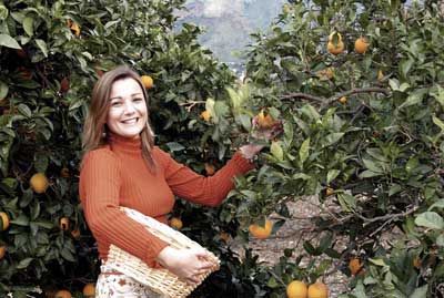 Trädgården fängslar med sina hundraåriga träd, fruktträd och med den omsorg de sköts och doften av apelsinblommor om våren